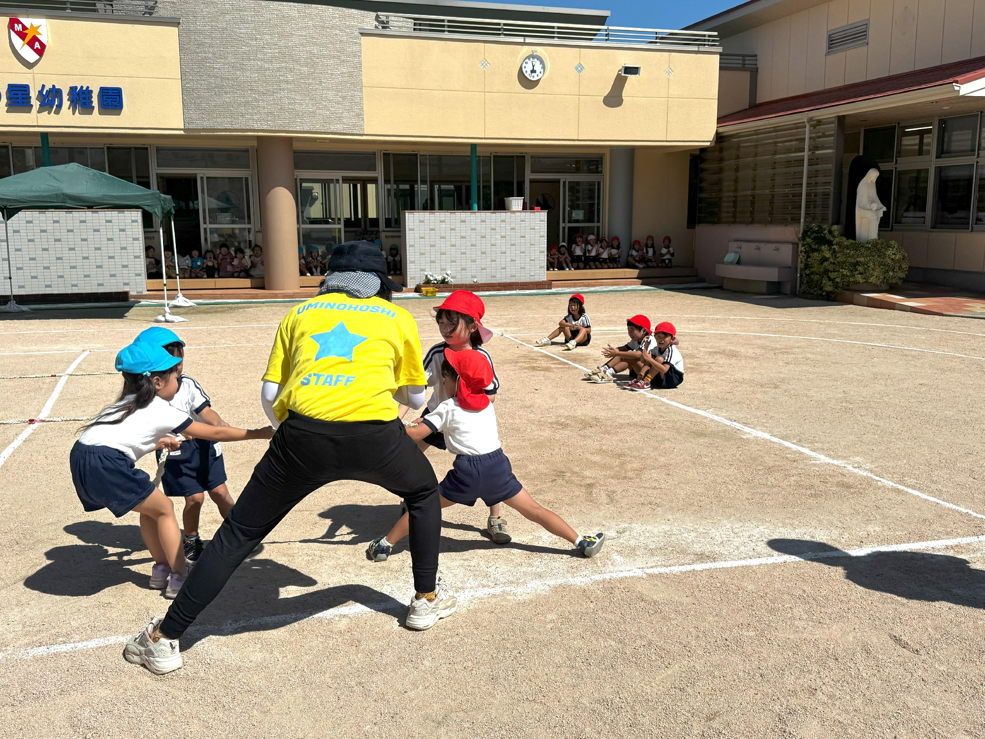 暑さや天気の関係で、外での練習は少しになっていますが、どこでやっても同じくらい一生懸命に取り組んでいますよ。当日は、あたたかく見守り、大きな声援をお願いします☆卒園児・未就園児の皆さんも遊びにくるのをお待ちしています♪