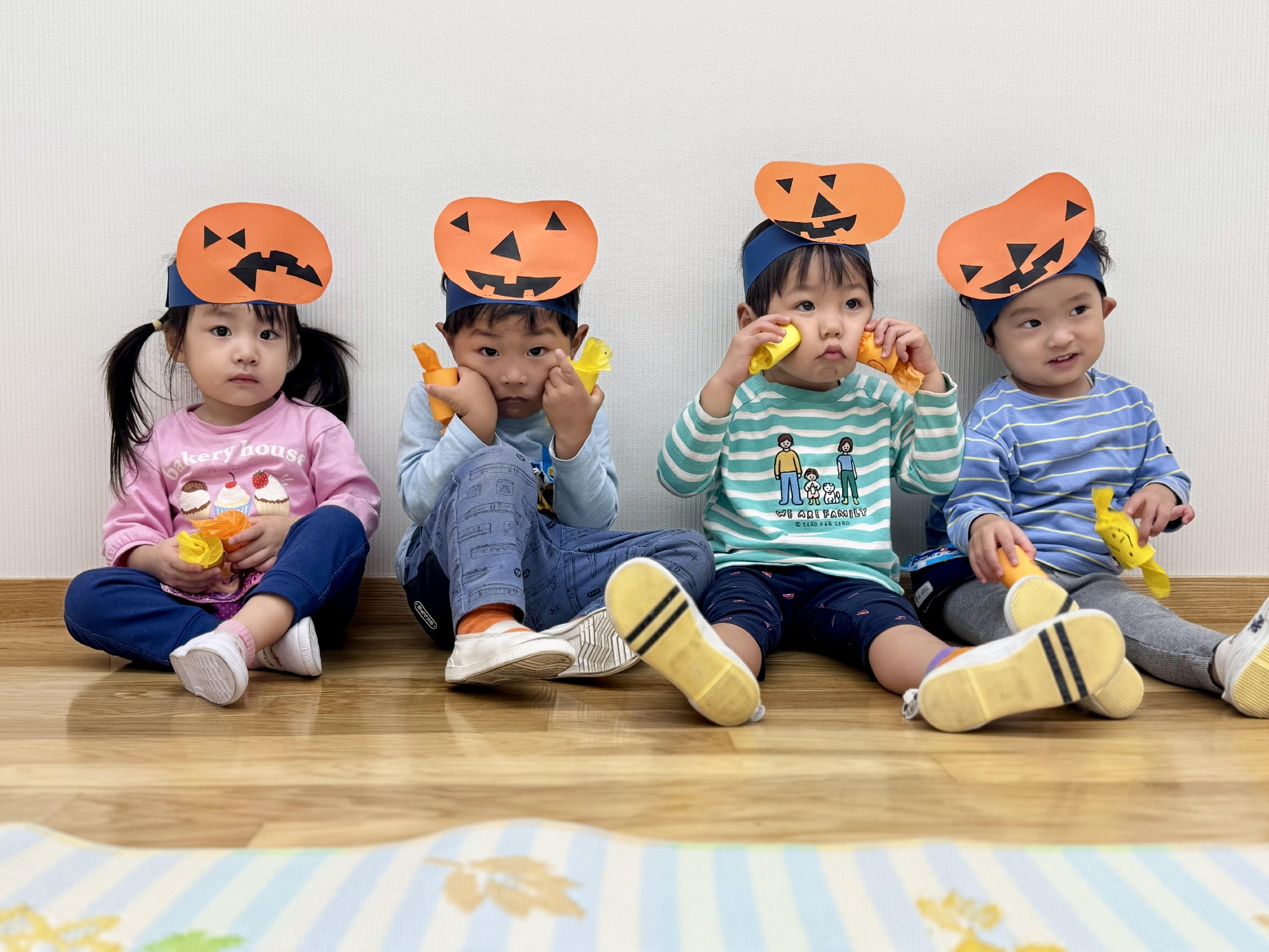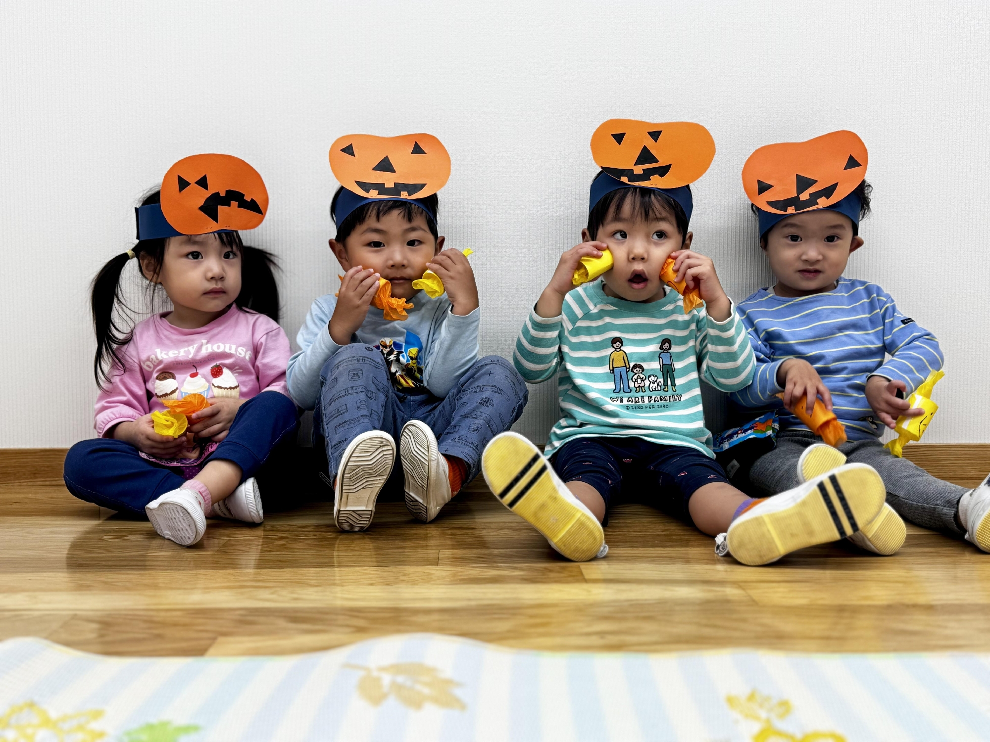 さくら組さんは、かぼちゃのお面にかぼちゃキャンディを製作しましたよ♡