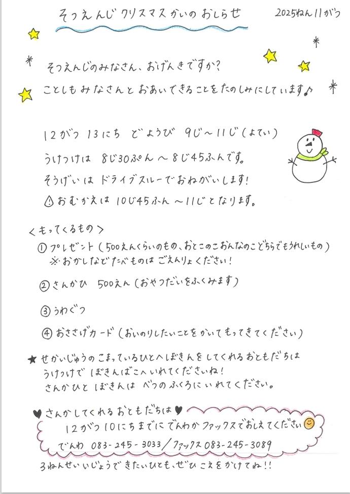 幼稚園では、卒園児クリスマス会を行います!卒園児の皆さん、ぜひ遊びにきてくださいね☆
