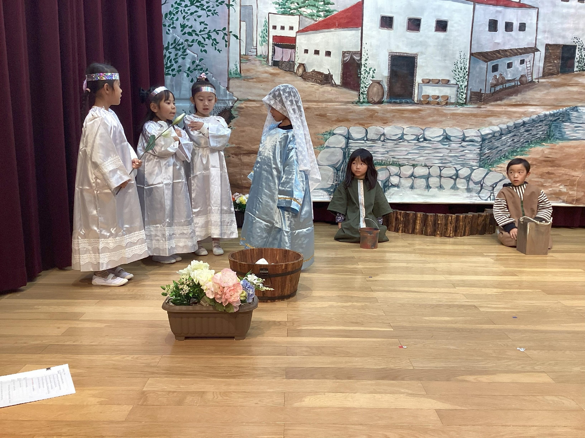 Aさんは聖劇、Bさんは世界の始まり、Cさんと2歳児さんはおべんとうバスの劇をしました♪