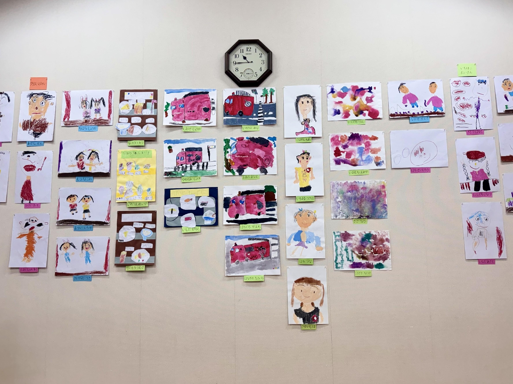 子どもたちの1年間描いてきた絵や、立体の製作物を展示しています。